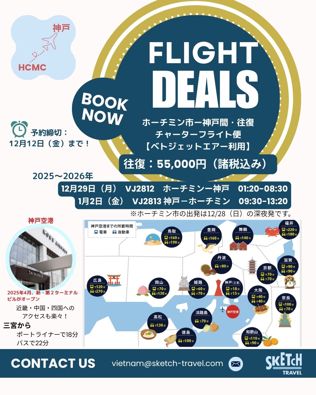 年末年始 ホーチミン市ー神戸間往復 航空券プロモーションのお知らせ